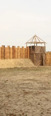 Znajdziemy tam zatem - mały amfiteatr greckie, rzymskie kazamaty, palisadę, wieżę i chaty rzemieślników z XI wieku, wieżę rycerską będącą wierną repliką rycerskich grodków stożkowych, a także chatę kasztelana z XIII wieku.