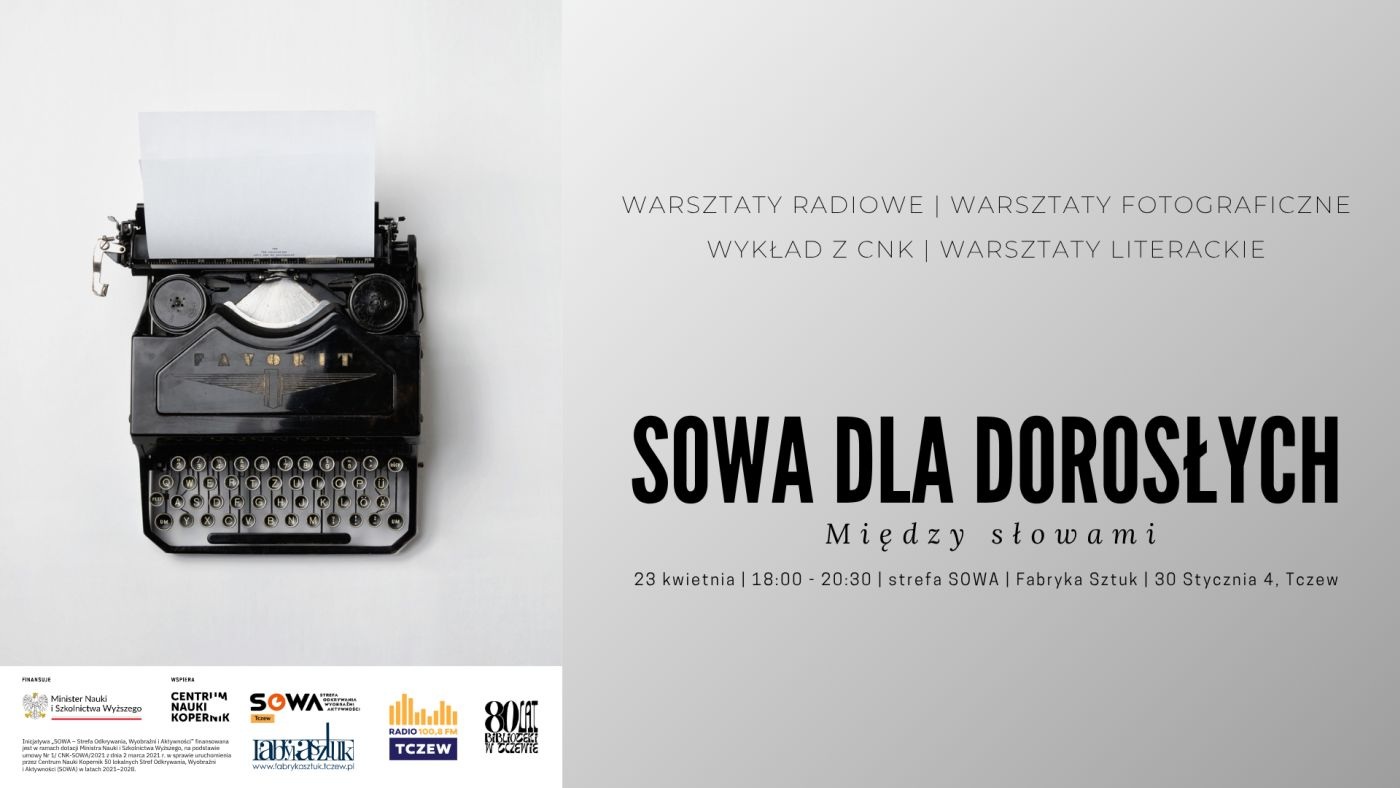 W najbliższy czwartek 23 kwietnia o godz. 18.00 w Strefie Odkrywania, Wyobraźni i Aktywności SOWA, która mieści się w Fabryce Sztuk przy ul. 30 Stycznia 4, odbędzie się spotkanie dla osób dorosłych. Porozmawiamy o komunikacji międzyludzkiej. Wstęp bezpłatny.