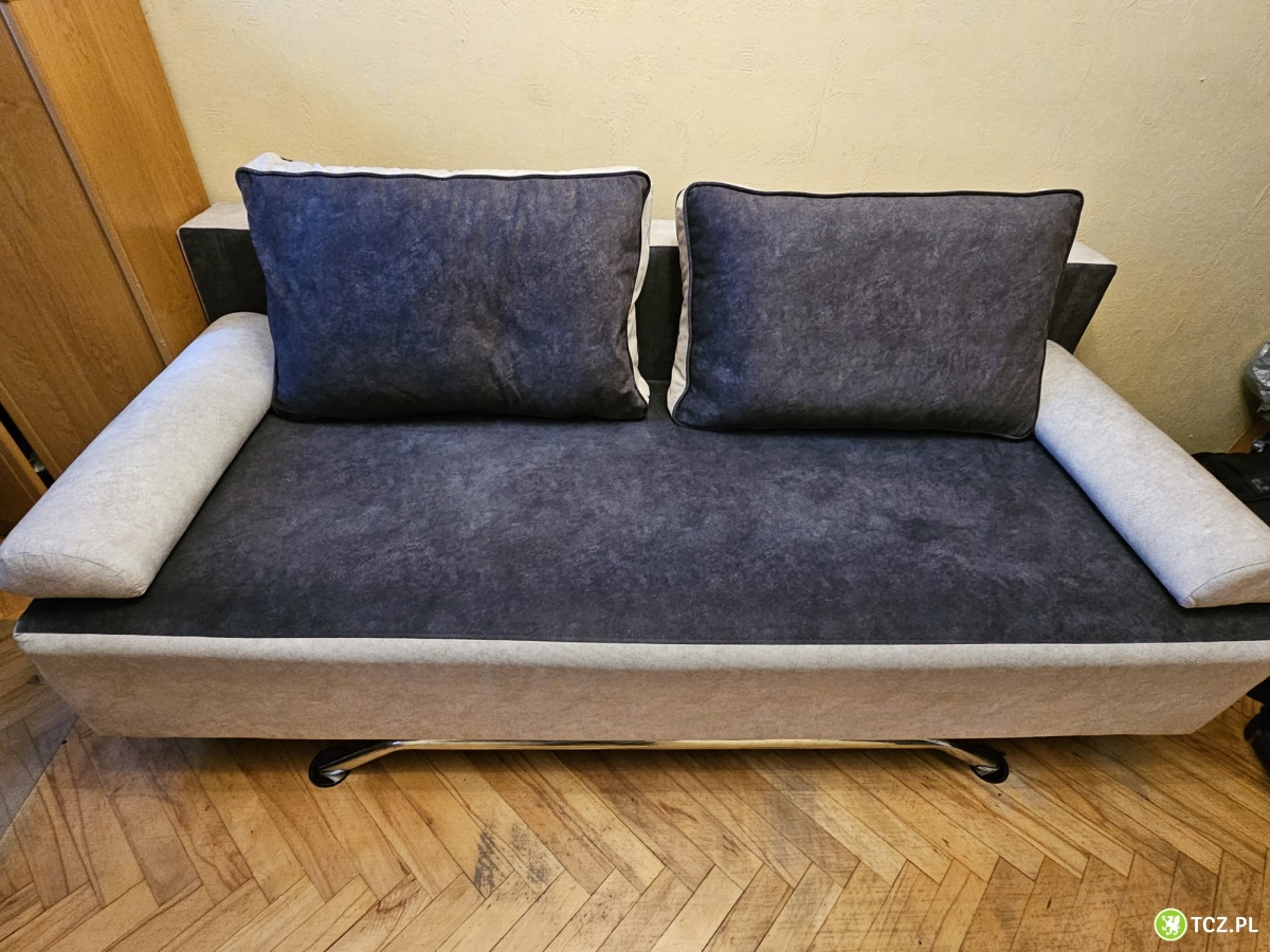 Treść ogłoszenia Sprzedam tapczan używany, stan dobry, kolory grafit/kremowy długość 198 cm szerokość po rozłożeniu 143 cm, szerokość po złożeniu 92 cm. Duża skrzynia na pościel. Odbór osobisty.