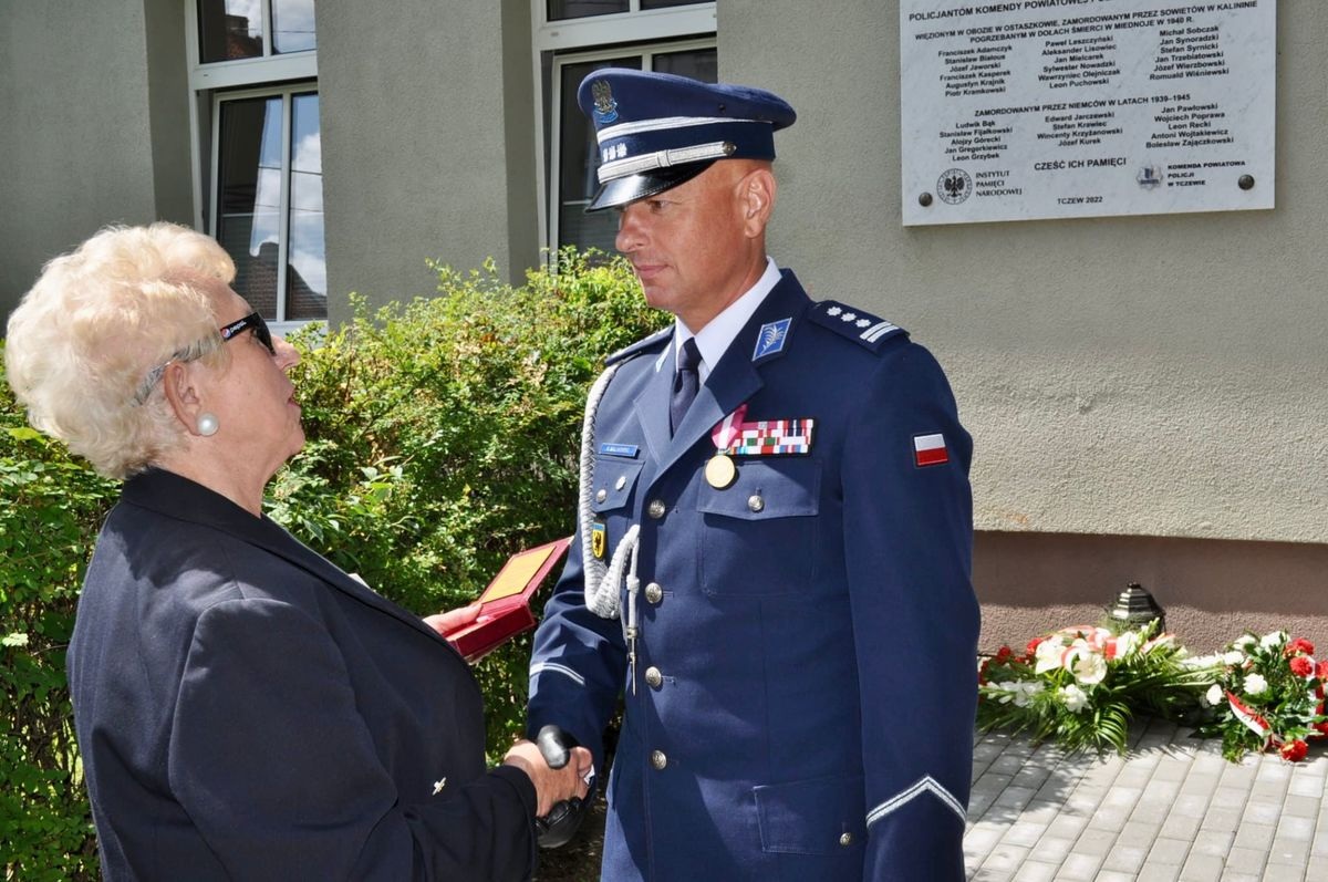 - To szczególne miejsce upamiętniające bohaterów, których odwaga i poświęcenie zapisane są w historii naszego kraju. Uroczystego odsłonięcia tabliczki z nazwą dokonał Komendant Powiatowy Policji w Tczewie, Prezydent Miasta Tczewa - Mirosław Pobłocki oraz Pan Jerzy Wierzbowski - pomysłodawca powstania skweru. "Dąb Pamięci", który został zasadzony w tym miejscu, stał się symbolem bohaterstwa i męstwa poległych policjantów. To drzewo będzie przypominało nam o ich ofiarności. Obecna podczas uroczystości Pani Emilia Maćkowiak ze Stowarzyszenia Rodzina Katyńska w Gdańsku symbolicznie podsypała zasadzony dąb ziemią katyńską. Uroczystości towarzyszył wzruszający moment, gdy delegacje na czele z Komendantem Powiatowym Policji w Tczewie oraz I zastępcą Komendanta Powiatowego Policji w Tczewie złożyły wiązanki kwiatów. To symboliczny gest szacunku i pamięci, jaki oddajemy naszym bohaterom, a także wyraz wdzięczności za ich służbę. Doktor Piotr Szubarczyk uświetnił uroczystość, przedstawiając zarys historyczny. Pani Urszula Roguska - Pomorski Koordynator Regionalny programu "Katyń ... ocalić od zapomnienia" omówiła znaczenie "Dębu Pamięci". Pani Hanna Śliwa - Wielesiuk również zabrała głos, dziękując Komendantowi Powiatowemu Policji w Tczewie za współpracę z Rodziną Katyńską w Gdańsku, wręczając mu odznaczenie w podziękowaniu za zaangażowanie. Kapelan tczewskich policjantów - ksiądz Jan Buk przeprowadził modlitwę, po której dokonał poświęcenia skweru. W uroczystości uczestniczył również Starosta Tczewski - Mirosław Augustyn oraz Stefan Kukowski - Wielki Mistrz Światowej Konfederacji Orderu Świętego Stanisława. Charakter uroczystości podkreślili członkowie Harcerskiej Orkiestry Dętej. Dziękujemy wszystkim, którzy wzięli udział w tej uroczystości, oddając hołd bohaterom. Nasza pamięć i wdzięczność są dowodem, że ich służba i ofiarność nie zostały zapomniane i zawsze będą żyć w naszych sercach. - relacjonuje st. post. Katarzyna Ożóg z tczewskiej policji.