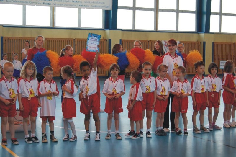Imprezę uświetnił występ czirliderek z SP 12 przygotowanych przez panią Barbarę Brotaj. Na zakończenie zawodów puchary, medale, dyplomy i słodycze wszystkim dzieciom i ich opiekunkom wręczał wicerezydent miasta Zenon Drewa oraz dyr. TCSiR Grzegorz Żemajtis. Prezydent pogratulował sprawności i zaangażowania przedszkolakom, dla których były to pierwsze zawody sportowe w życiu i wyraził nadzieję, że przyszłym roku wystartuje więcej Przedszkoli.
