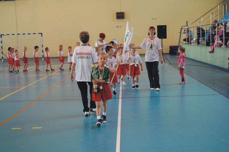 Od początku prym wiedli mali sportowcy reprezentujący Przedszkole "Jodełka". Wygrali aż 7 z 9 konkurencji i chociaż na mecie różnice pomiędzy zawodnikami były niewielkie, bezapelacyjnie zostali po raz drugi z rzędu zwycięzcami turnieju. Drugie miejsce dla wielokrotnego tryumfatora tych zawodów Przedszkola Nr 8, a trzecie "Chatka Puchatka".