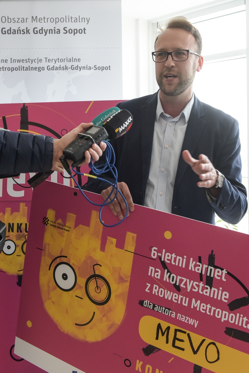Opracowując propozycję nazwy szukałem wspólnego mianownika dla Trójmiasta i całego naszego regionu. Mewa jest takim wspólnym mianownikiem, bo występuje u nas praktycznie wszędzie - mówił podczas uroczystości Michał Wiśniewski, autor nazwy MEVO. -Mnie osobiście mewa kojarzy się również z wolnością. Dodatkowo chciałem nieco umiędzynarodowić moją propozycję, dlatego wybór padł na esperanto. Myślę, że każdy może w tej nazwie coś dla siebie odnaleźć. Pozostałe nazwy były również pomysłowe i udane. Gratuluję wszystkim i dziękuję - dodał.