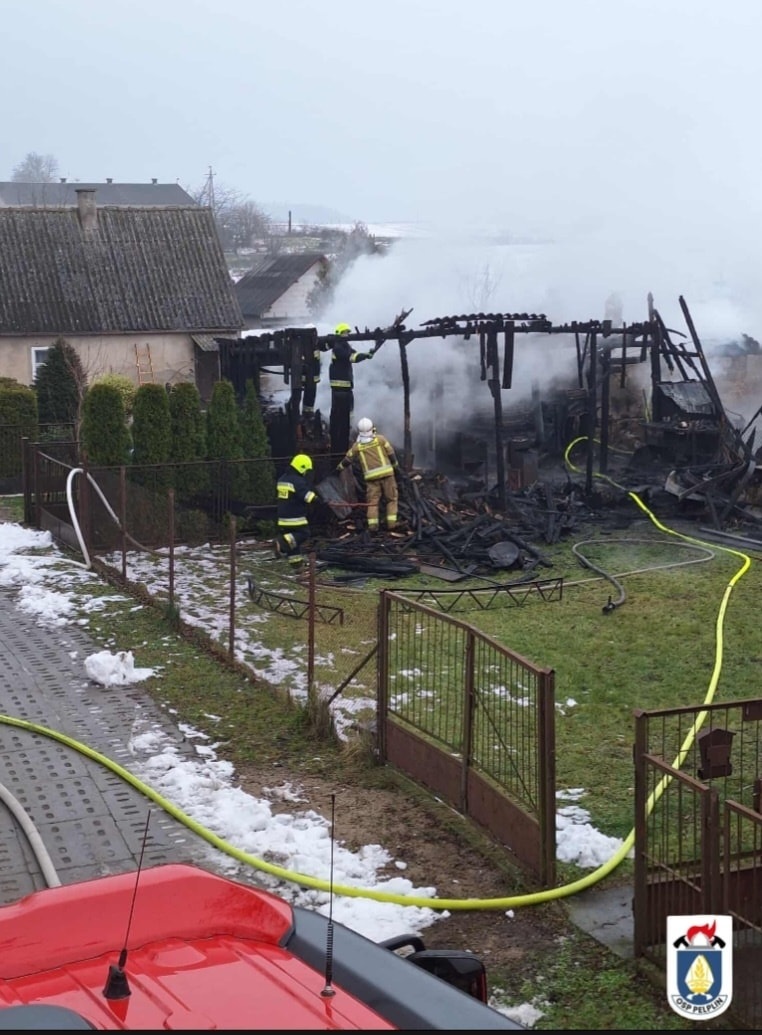 Płonęły budynki gospodarcze. Brak jest osób poszkodowanych. Pożar gasiło dziewięć zastępów straży - mówi kpt. Michał Myrda, rzecznik KP PSP Tczew.
