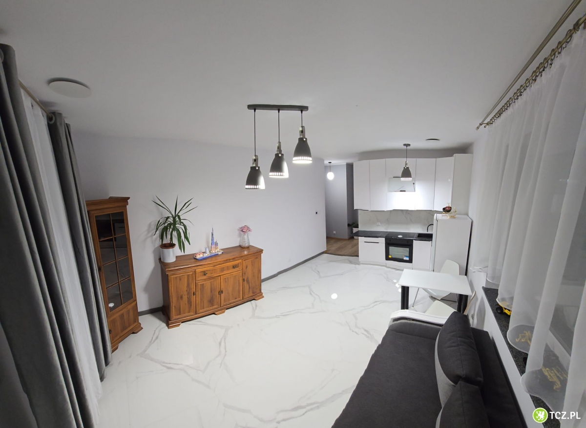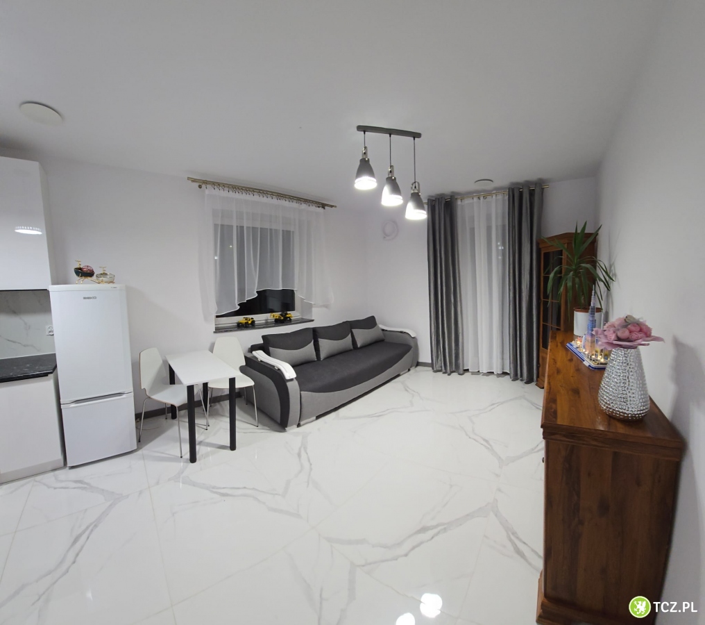 Mieszkanie znajduje się na parterze, dwupokojowe z tarasem, umeblowane